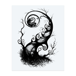 Un arbre fantomatique aux branches tortueuses et effrayantes, avec un tourbillon effrayant contenant une lune. Ce tatouage noir et blanc au style désordonné et effrayant évoque un conte d'Halloween classique.
