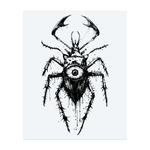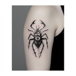 Un insecte effrayant aux longues pattes pointues et aux griffes géantes. Son œil maléfique, unique et central, lui confère un aspect effrayant. Ce tatouage noir et blanc, au style désordonné et pointu, est à la fois dégoûtant et terrifiant.