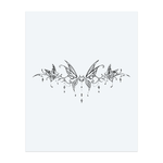 Trois papillons déploient leurs ailes autour d'un cœur lumineux au centre. Des paillettes et des gouttes flottent autour d'eux. Ce tatouage aux lignes fines allie magie et beauté, exprimant l'amour et la liberté dans un style fantaisie délicat.