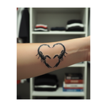 Un tatouage tribal audacieux représentant deux scorpions se faisant face, leurs queues recourbées en forme de cœur. Il raconte une histoire d'amour intense, mêlant danger et passion dans un motif saisissant.