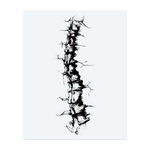 Une colonne vertébrale fissurée s'étend comme une pierre qui se brise. Ce tatouage noir illustre la force dans la douleur, avec des os qui refusent de se désagréger, même fracturés.