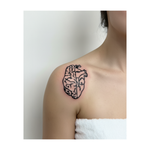 Un motif audacieux divisé en deux moitiés : d’un côté, un cerveau aux lignes acérées évoquant un labyrinthe ; de l’autre, un cœur aux contours marqués. Ce tatouage minimaliste symbolise l’équilibre entre la pensée et l’émotion.