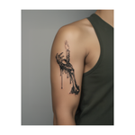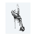 Une main osseuse surgit de l'obscurité, tenant une bougie fondue où ruisselaient feu et cire. Ce tatouage noir brille d'une lumière étrange, symbolisant la vie et la mort dans une seule flamme.