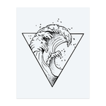 Un tatouage aux lignes audacieuses représentant une vague géante s'écrasant à l'intérieur d'un triangle. Il symbolise la force infinie de la mer, la puissance de la nature, la liberté et le flux incessant de la vie.