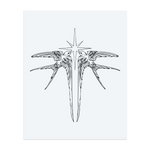 Un tatouage aux lignes fines représentant deux hirondelles volant face à face, leurs becs se touchant sous une étoile brillante. Il raconte une histoire d'amour, de protection et d'espoir, illustrant un lien qui trouve toujours la lumière.