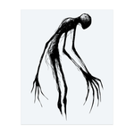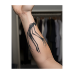 Une silhouette élancée et grande, aux doigts longs et pointus, s'étend silencieusement. Ce tatouage noir est étrange et mystérieux, comme une obscurité naissante.