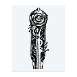 Une fermeture éclair s'ouvre pour révéler des engrenages, des vis et des pièces métalliques, comme si un robot se cachait sous la peau. Ce tatouage de style steampunk mêle machine et humain dans une touche d'Halloween audacieuse.