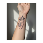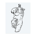 Un tatouage surréaliste, composé de lignes épurées, représente un torse humain découpé en pièces de puzzle, révélant os, muscles et mains. Il évoque la complexité du corps humain, un assemblage de multiples éléments invisibles qui s'imbriquent parfaitement.