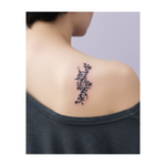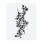 Un tatouage audacieux représentant un brin d'ADN se transformant en lianes et en fleurs. Il raconte une histoire de vie, de croissance et de nature, montrant comment la beauté et la force sont inscrites dans nos racines.