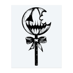 Une gourmandise avec une touche effrayante ! Ce tatouage noir et blanc représente une sucette au visage terrifiant : une bouche de citrouille-lanterne et un œil effrayant.