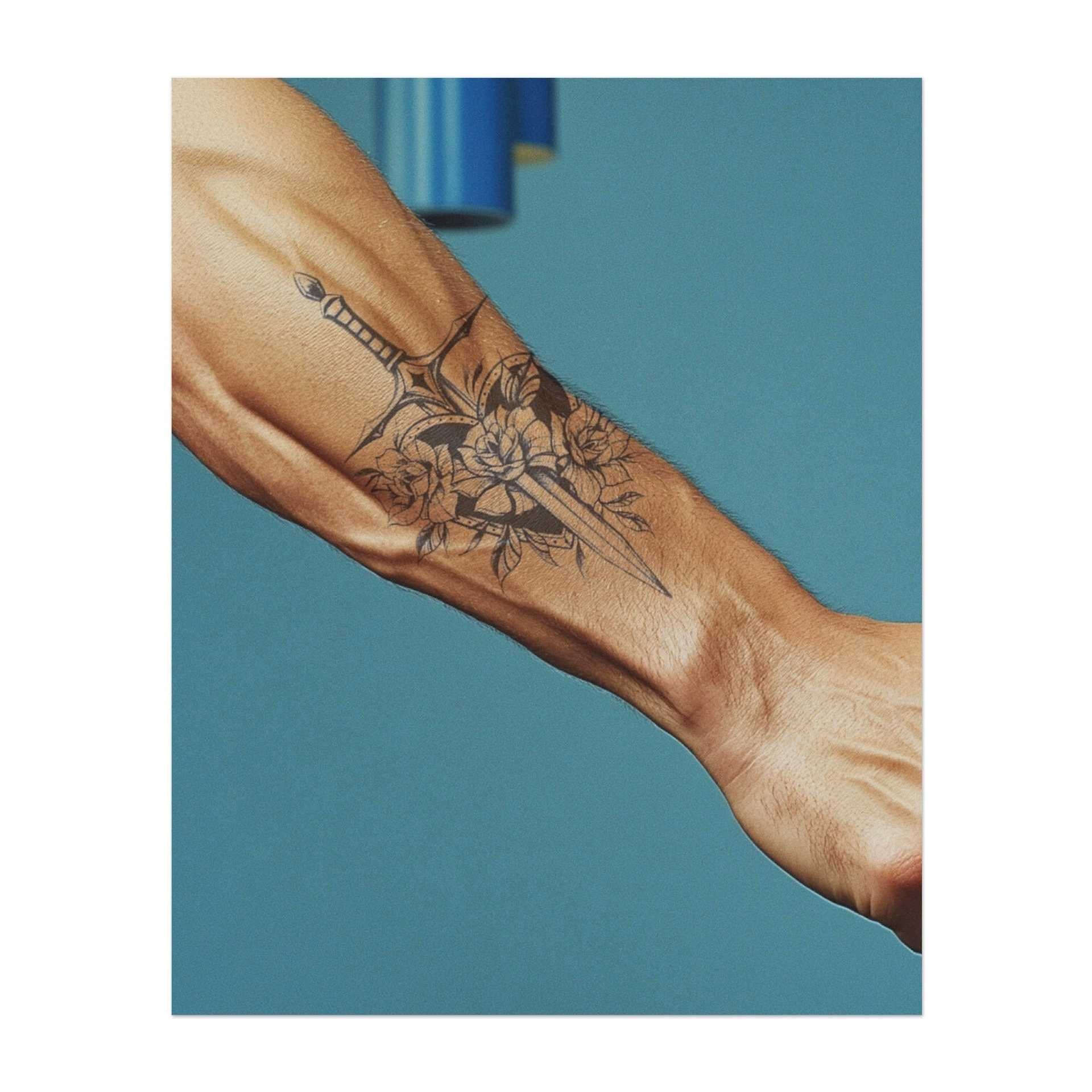 Une épée perçant un cœur, entourée de belles roses. Ce design symbolise l'amour, la force et l'équilibre entre la beauté et la puissance. Parfait pour quelqu'un qui embrasse à la fois la passion et la résilience dans son parcours.