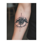 Un tatouage audacieux en blackwork représentant un œil écarquillé avec une étoile brillante en son centre. Il raconte une histoire de vision, de lumière et de mystère, comme si l'univers lui-même observait à travers cet œil.